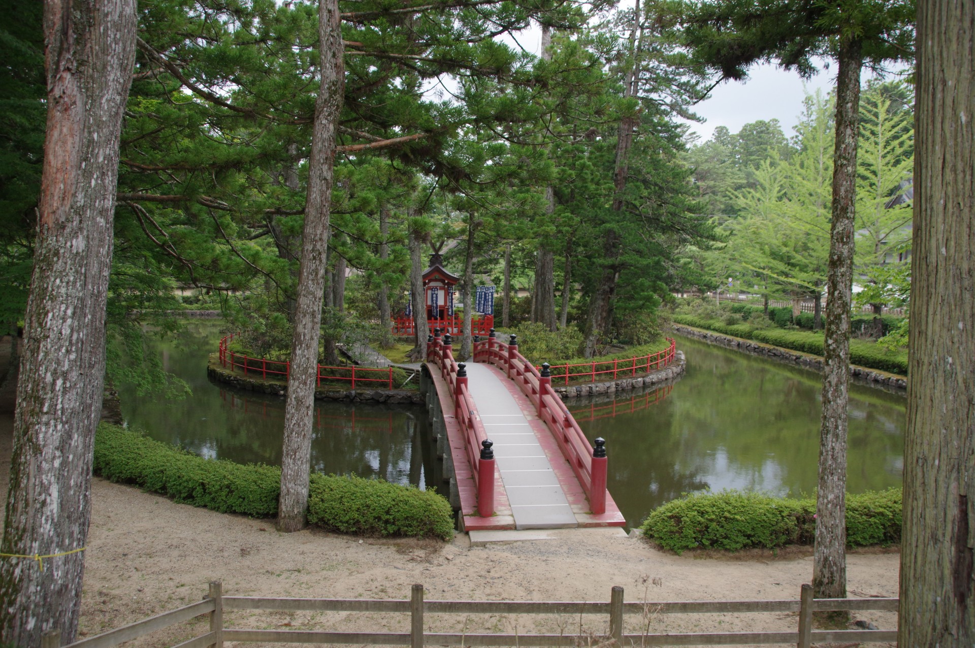 During the latter half of the 18th century. droughts occurred frequently. and the priest Zuisouin Jiko donated the statue of the Dragon King and the relics of the deity. In the spring of 1771 (Meiwa 8). a small shrine was built on the island in the lotus pond and enshrined there. In 1996 (Heisei 8). the shrine and the bridge were restored. Flowers and trees that bloom in all seasons are planted around the pond. making it a famous scenic spot.