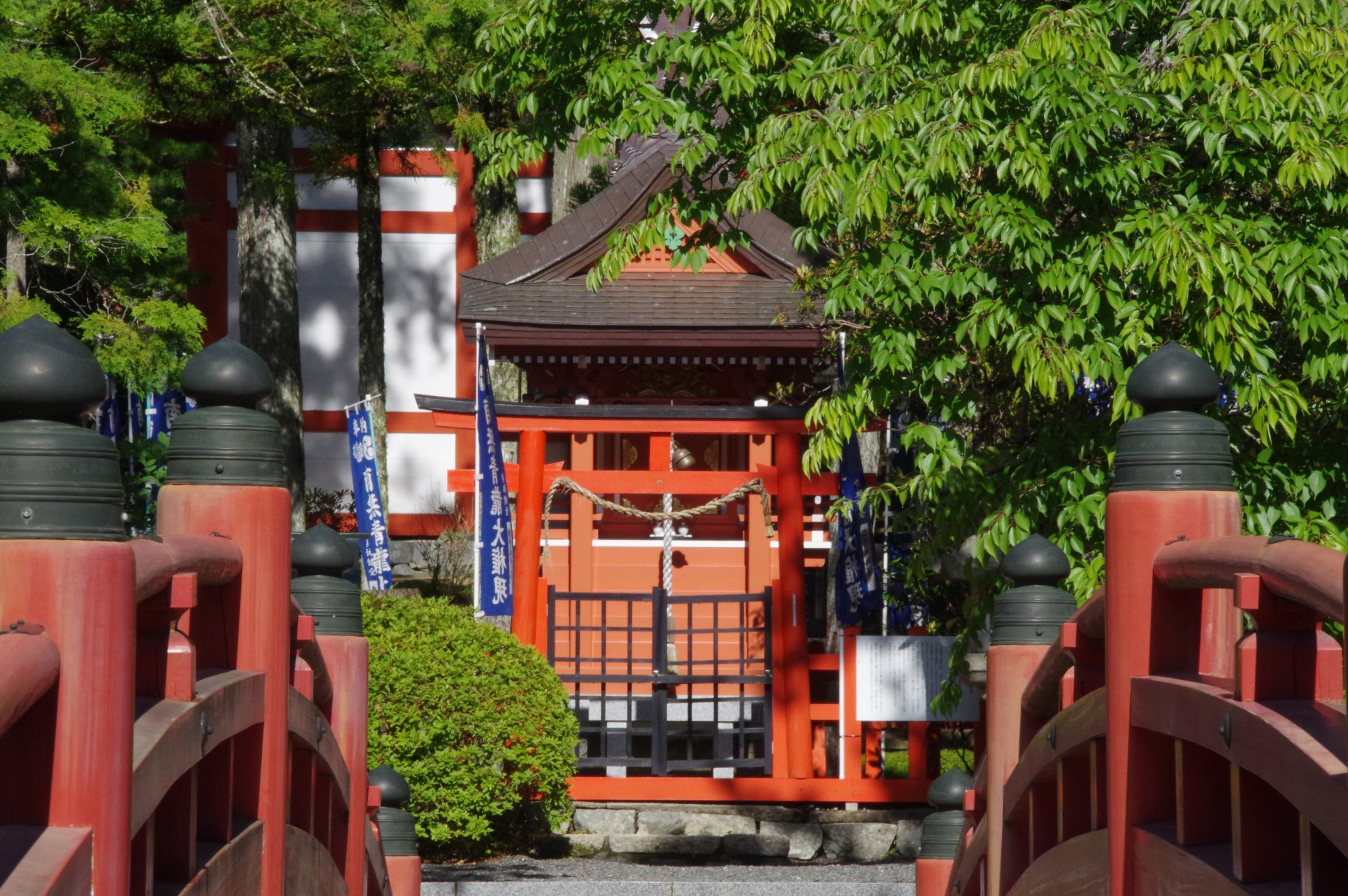 Crossing this bridge will take you into the sacred area of the Daishi's mausoleum. Those who cross this bridge should dress themselves up in front of the bridge. bow. and step into the sacred area with a pure heart. This bridge is made up of 36 planks and the entire bridge. which counts as 37 planks. and is said to represent the 37 deities of the Vajrayana realm. The backs of the planks are engraved with Sanskrit characters that represent the symbols of Buddha. It is said that it was on this bridge that Karukaya Doshin and Ishidomaru. father and son. first met. This bridge used to be made of wood. but has now been replaced with a stone bridge that is true to its original form.